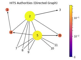 Authorities:Hubsからたくさん引用される頂点Hubs:Authoritiesをたくさん引用する頂点