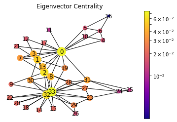 固有ベクトル中心性は次数中心性の拡張とも言える.次数中心性では隣接頂点をすべて平等に扱っているが,固有ベクトル中心性では,より重要な隣接頂点の寄与をより大きく採用する.