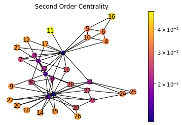 Second Order Centralityが小さいほど,重要な頂点であるといえる.