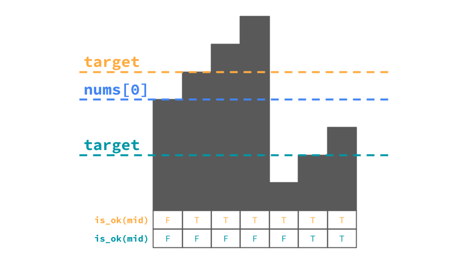 60: Capacity To Ship Packages Within D Days 答え 無限に積める船があれば確実に$D$日以内に運べる.逆に許容積載量が$0$なら絶対に運べない.「ある条件を満たす最小値」と来れば,二分探索の出番.