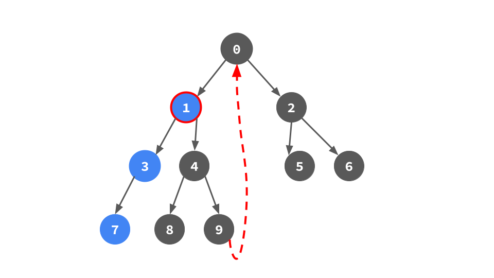 else: # すでに赤矢印が張ってあるということは左部分木は見終わったということになる